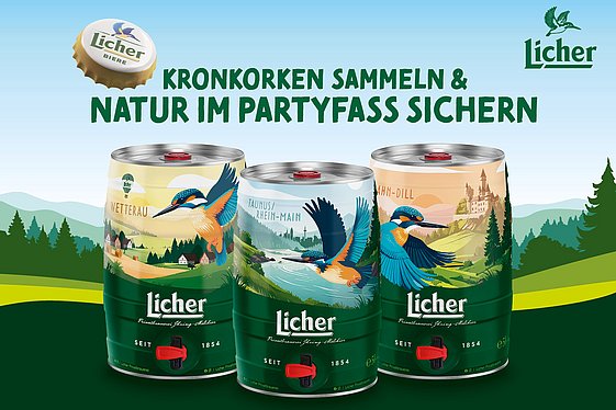 Lich, 20. März 2026. Die Natur im Partyfass genießen – unter diesem Motto startet die Licher Privatbrauerei eine neue Kronkorkensammelaktion. „Viele Licher-Fans haben sich bei unserer erfolgreichen Sommer-Aktion 2025 besonders über die Rückkehr des 5-l-Partyfasses gefreut“, sagt Holger Pfeiffer, Geschäftsführer der Licher Privatbrauerei. „Gleichzeitig steht Licher mit dem Eisvogel als Markenikone seit Jahrzehnten für Natur und Natürlichkeit. Mit der neuen Aktion verbinden wir beides und bringen den Menschen in der Region Lebensfreude durch Natur und Genuss.“